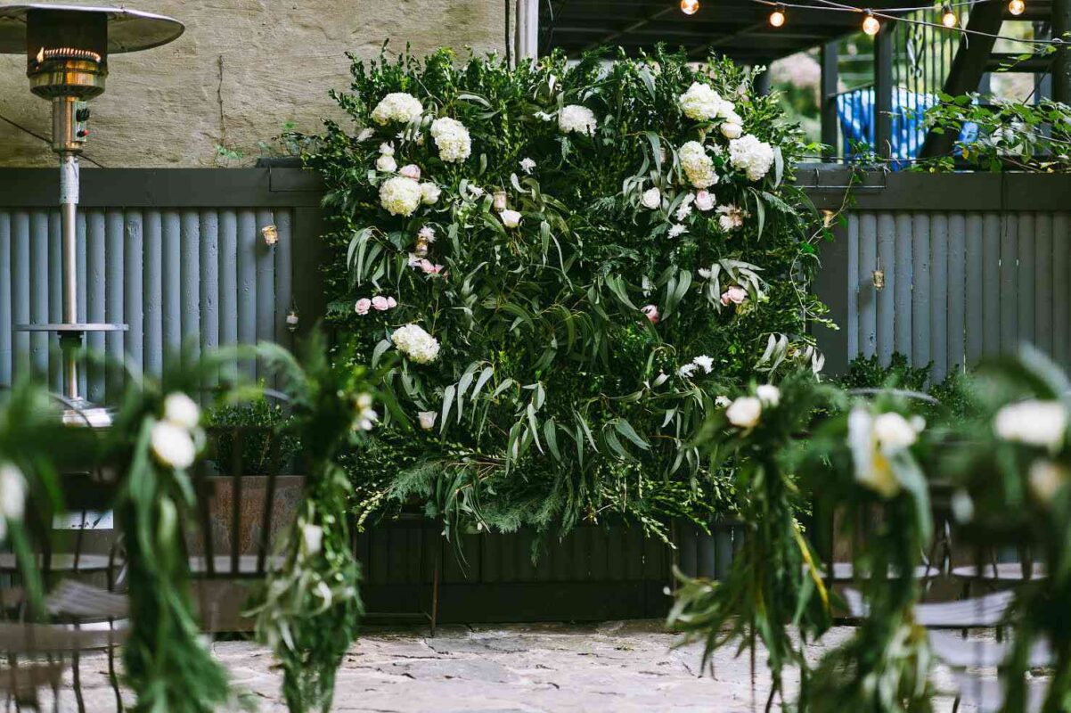 Ideas de decoración de bodas al aire libre con paredes verdes resistentes a la intemperie