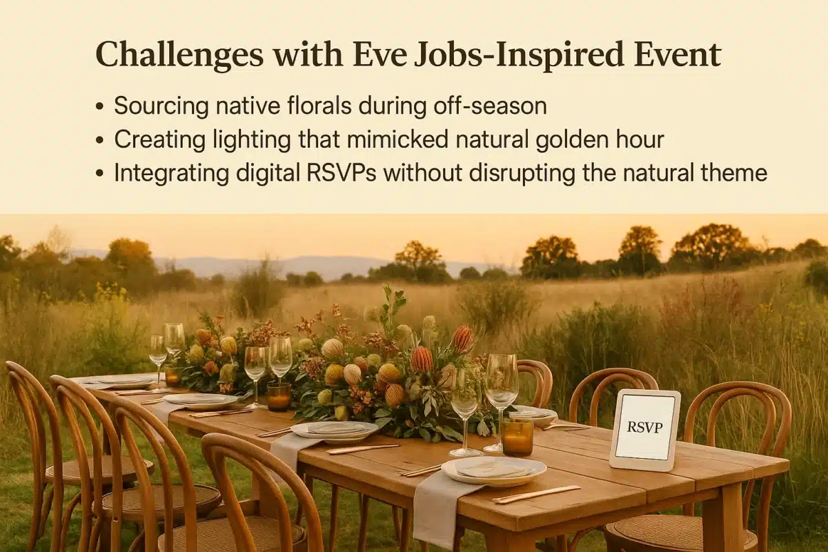 When we helped design a similar event inspired by Eve Jobs’ aesthetic, we faced challenges: