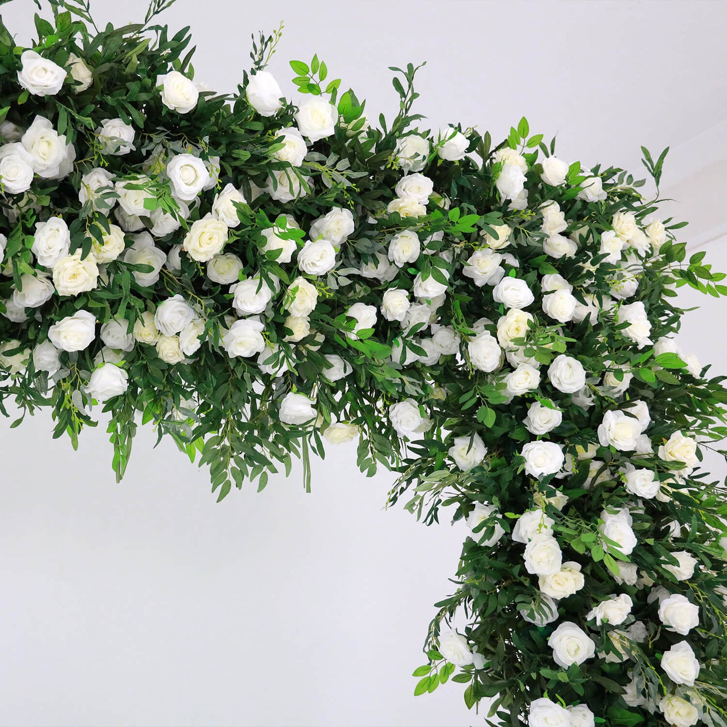 This Elegant White Rose and Green Leaf Arch for Wedding Ceremony and Party Décor, using our elegant white rose and green leaf arch, this delicate flower arch can bring sophistication and romance to any occasion, whether indoors or outdoors.