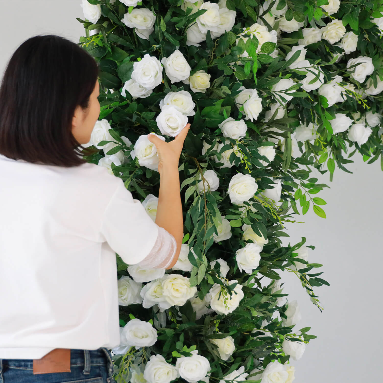 This flower wall is suitable for any event and occasion, but we recommend you to use it at your wedding. Because white roses represent a dreamy and pure love, highlighting romance and sophistication, which can enhance the quality of your wedding.