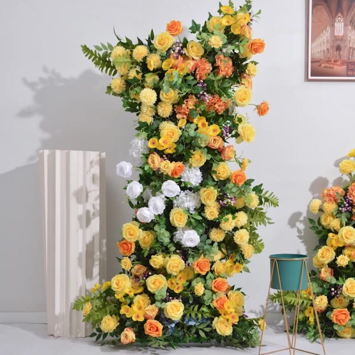 This yellow rose silk flower wedding backdrop – elegant centerpiece decor for events. This yellow rose silk flower wedding backdrop adds a touch of sophistication and natural beauty to your wedding or special event, perfect for creating memorable moments and unforgettable photos that will last a lifetime, creating unforgettable memories and taking beautiful photos, and adding a touch of happiness to your ceremony.