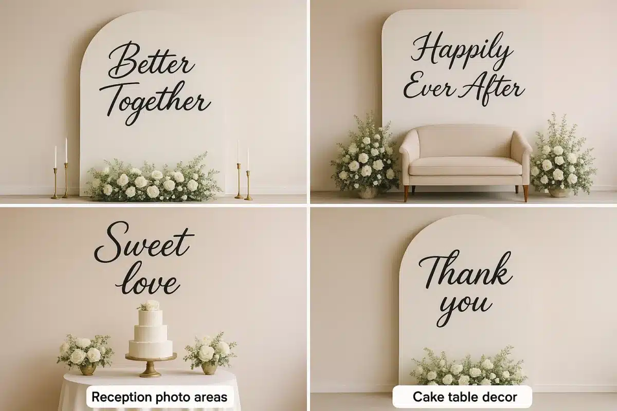 If you’re a planner, supplier, or decorator looking to offer pre-made or customizable signs, here are trending messages in 2025: